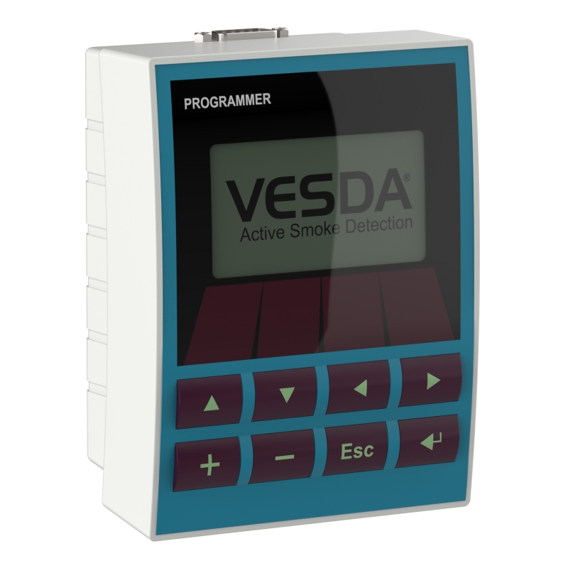 Programmeringsmodulen ger direkt åtkomst till alla VESDAnet-enheter i ett VESDA-rökdetekteringssystem. Det möjliggör konfigurering och statusrapportering av detektorer, skärmar och gränssnitt och krävs vid installation, idrifttagning och underhåll av ett VESDA-nätverk. Genom att använda en användarvänlig meny är det enkelt och enkelt att navigera genom de omfattande funktionerna i VESDAnet.